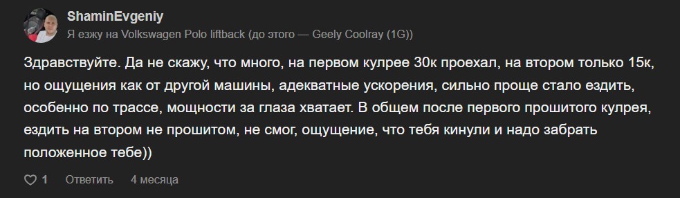 Обладатели Geely Coolray после прошивки подчеркивают улучшение разгона во всем диапазоне оборотов. Автомобиль увереннее ведет себя на подъемах и при движении с полной загрузкой. Коробка передач перестает искать оптимальную передачу в городском цикле.